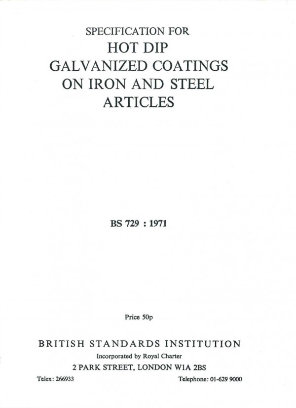 BS729 1971 영국 용융아연도금규격