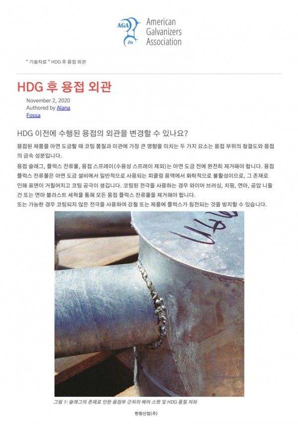 - 용융아연도금 후 용접 외관 Welding Appearance after HDG _ American Galvanizers Association.pdf (689.8K) 248회 다운로드 | DATE : 2025-04-01 10:48:28