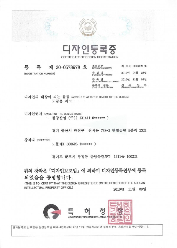 지그 디자인등록증(경완철) 페이지 정보 작성자 관리자 댓글 0건 조회 958회 작성일 20-08-21 12:24 본문 . 목록 이전글특허증(도금용 지그) 20.08.21 다음글지그 디자인등록증(방열기) 20.08.21