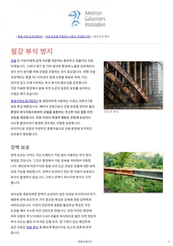 철강 부식 방지(녹청) _ 미국 아연 도금 협회