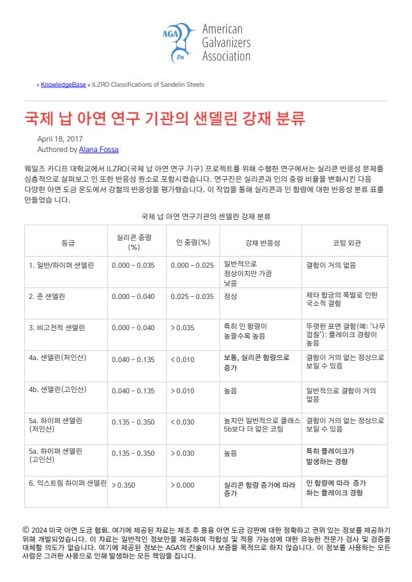 ILZRO 샌델린 강재 분류